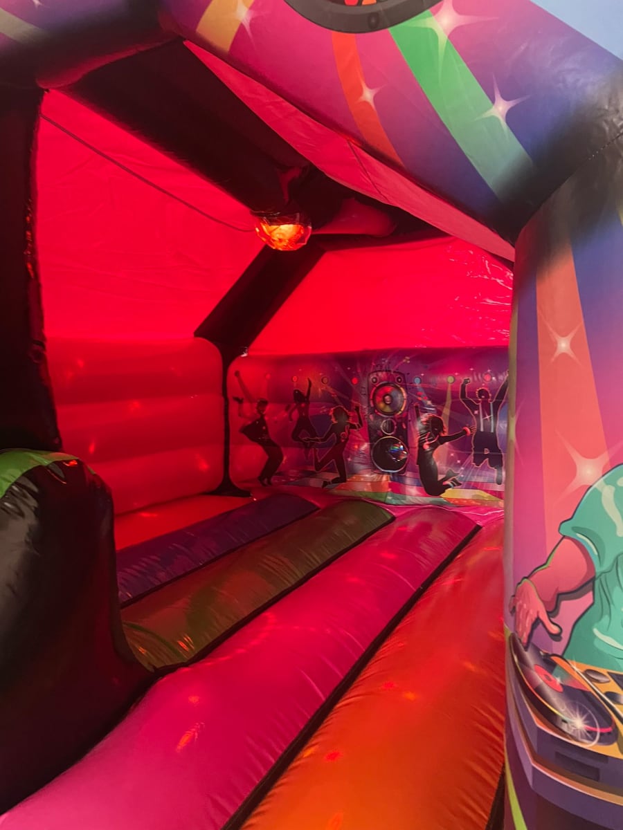 Our 3D Disco Combi bouncy castle is the perfect addition to any party or event, providing hours of fun and laughter for children of all ages. The vibrant colours and interactive design will capture the imagination of your little guests and keep them entertained for hours on end. includes PR System and disco ball light, you will need access to Bluetooth.
