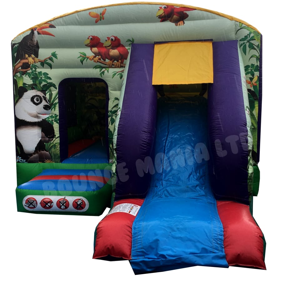 The Jungle themed Bouncy Castle and slide is suitable for both indoor & outdoor venues with a extra added feature of viewing windows on both sides.